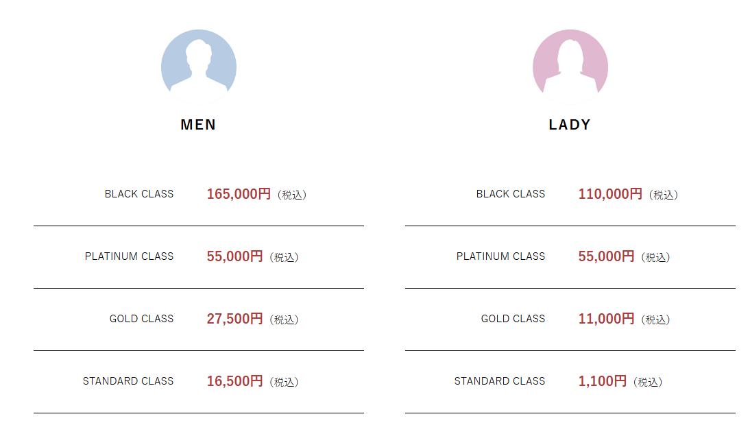 一律ではなく入会した女性、男性のクラスによって報酬が変わります。