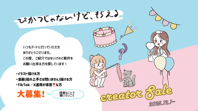 今回はP活ではない稼ぎ方/業務委託として依頼したい業務を募集させて頂きます◎